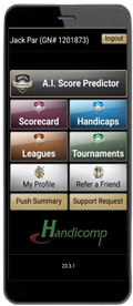 Free in the Golf Mobile Network app (iOS & Android), with optional Premium features like A.I. predictions and access to club & league handicaps.
